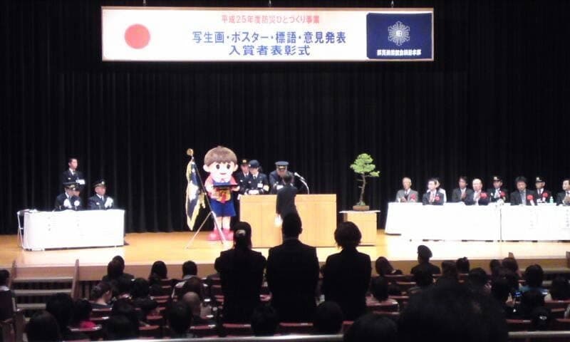 平成25年12月7日(土)那賀消防組合主催の「平成25年度防災ひとづくり事業」として「防火標語」の表彰式並びに入賞作品展示会が粉河ふるさとセンターにおいて開催されました。