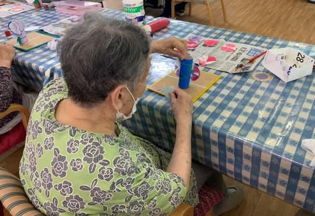 花は半紙を広げるまでどんな模様になっているのかわからないので、広げた時きれいな模様になっていた方は「上手くいったよ!」と嬉しそうにされていました。
