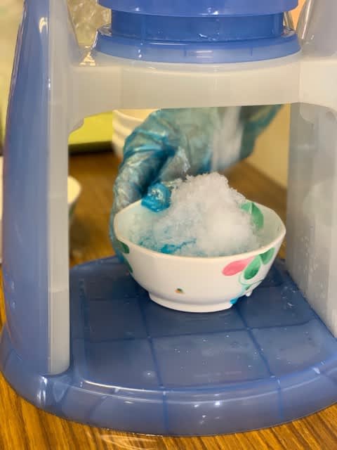 当日は天気もよく、まどから差し込む日光とともに、夏を感じてもらえるかき氷レクリエーションになりました。