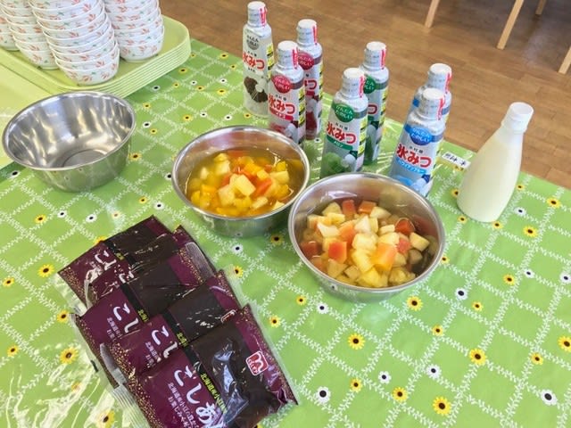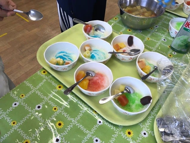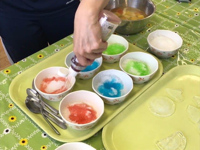 トッピングには、シロップの他にフルーツや練乳、あんこもご用意し、入所者様の好みに合わせて召し上がっていただけるようにしました。