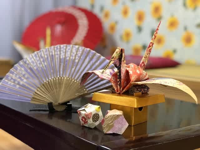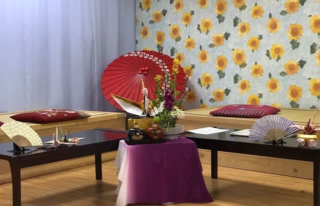 さらに、利用者様がレクリエーションで作成した折鶴と紙風船を飾って完成!