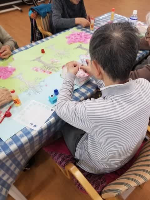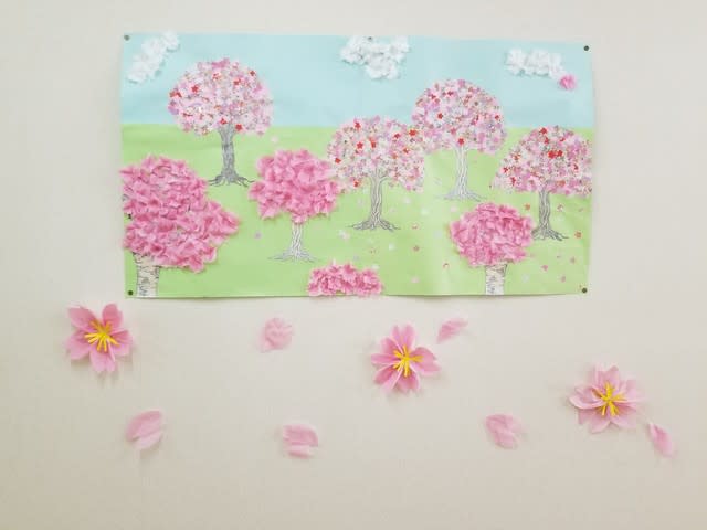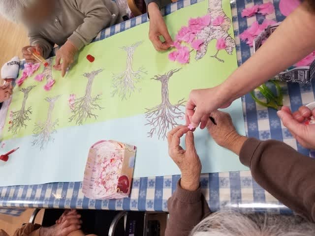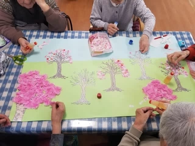 2月下旬より下準備をはじめ、3月中旬より少しずつ、おそらく桜が満開になるだろう4月初旬に向かい、大勢のご利用者と職員が一緒になって定期的に時間を設け、協力しながら作成にあたってきました。