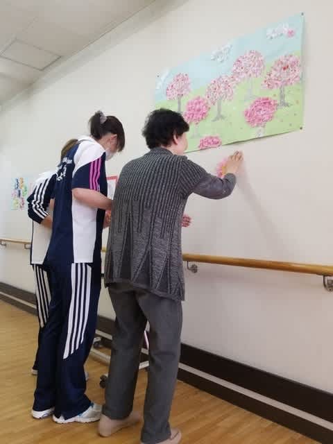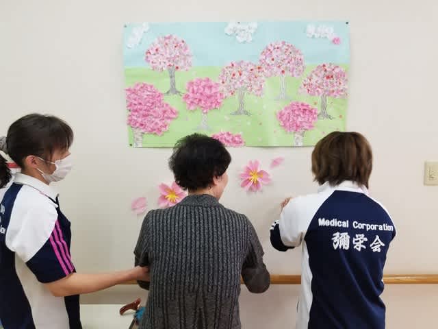 デイケアではお花見ドライブも実施していますが、これでやよい苑通所リハビリテーション内にも散ることのない満開の桜が毎日見られます。