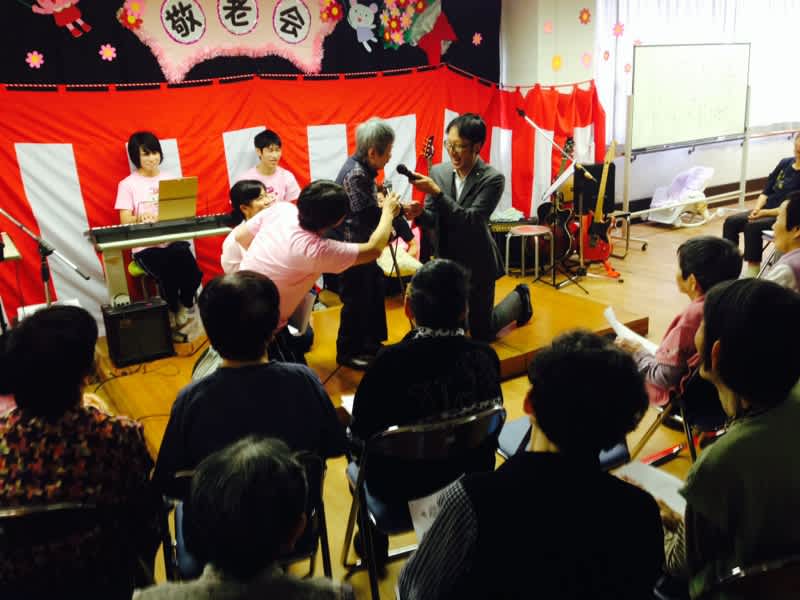 今回の敬老会では、各部署が手を取り一つのバンドを結成しました。