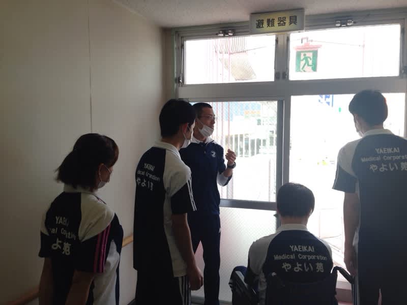 先日、やよい苑内において災害対策委員会主催の施設スタッフを対象とした避難訓練が行われました。
