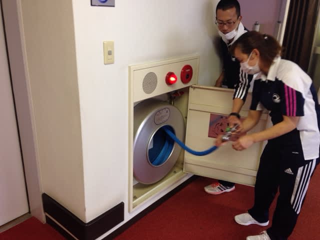 まず初めに、災害対策委員会の川嶋委員長指導の下、消火器及び消火栓の使用方法や設置されている位置の再確認などを行いました。