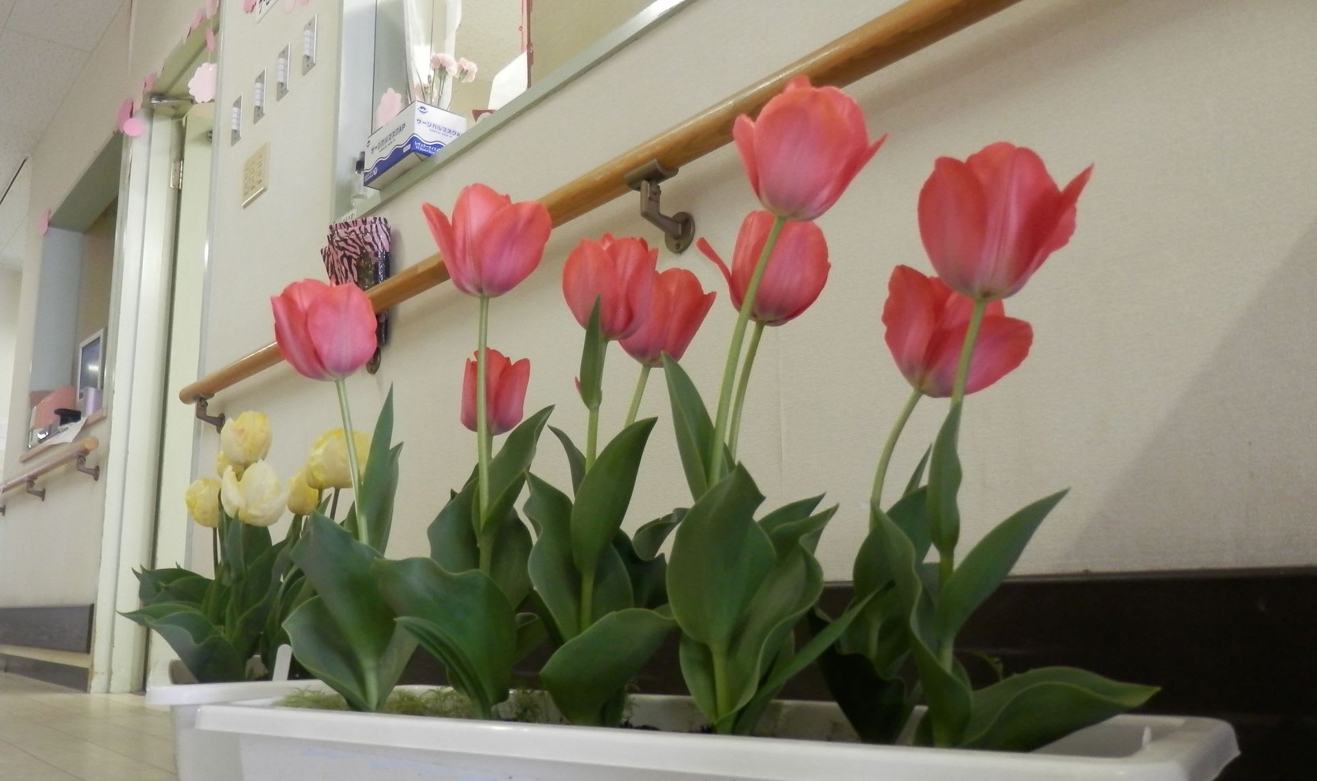 やよい苑ではレクリエーションの一環で花を育てることを行っており、春の訪れとともに綺麗に花が咲きました。