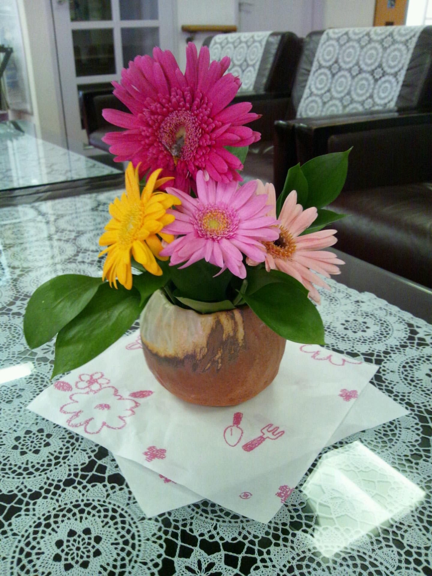 そしてこの可愛らしい花瓶は和田本部長が慰安旅行での陶芸の際にお作りになられたものです。