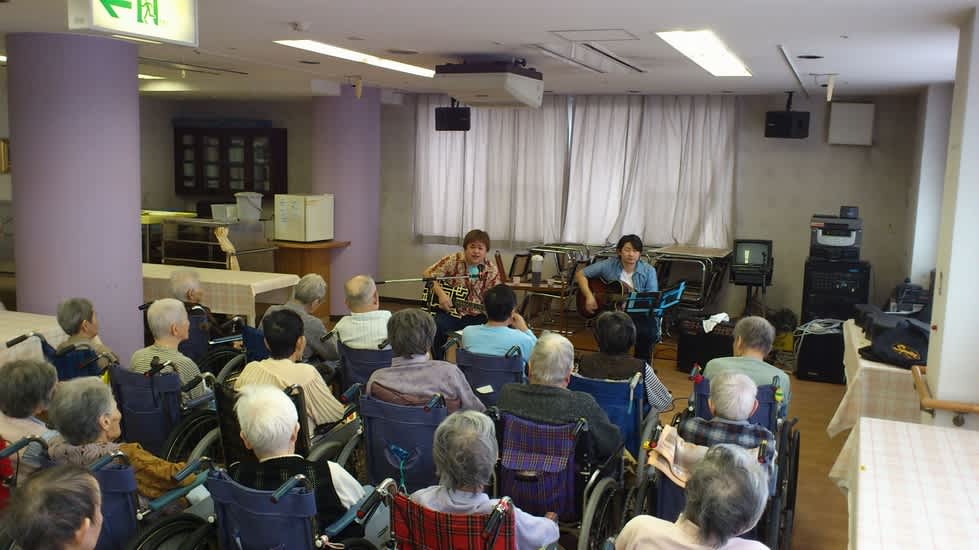 6月18日2時から、やよい苑大食堂にてフロアーの男性スタッフによるギター演奏会が行われました。