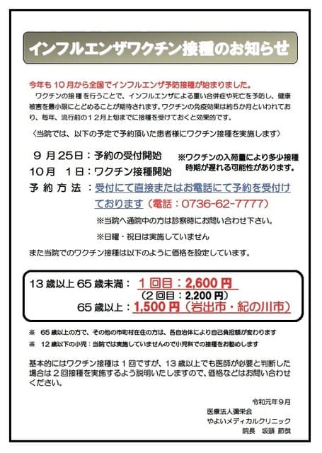 ワクチンの接種を行うことで、インフルエンザによる重い合併症や死亡を予防し、健康被害を最小限にとどめることが期待されます。