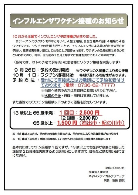 ワクチンの接種を行うことで、インフルエンザによる重い合併症や死亡を予防し、健康被害を最小限にとどめることが期待されます。