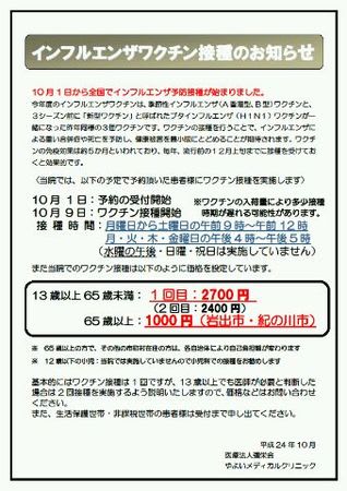 10月1日から全国でインフルエンザ予防接種が始まりました。
