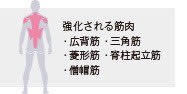 筋肉でいうと、広背筋 菱形筋 僧帽筋 三角筋 脊柱起立筋