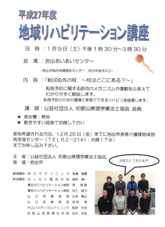 ※参加希望される方は、12月25日(金)までに岩出市長寿介護課地域包括支援センター(TEL:0736-62-2141)までお申込下さい。