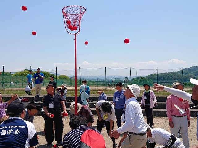 ウォーキングの途中には今回のコースにまつわる歴史問題や糖尿病に関するクイズ、緑地公園の運動場では参加者全員での玉入れ競争を行うなど、終始参加者を楽しませてくれる盛りだくさんの内容でした。