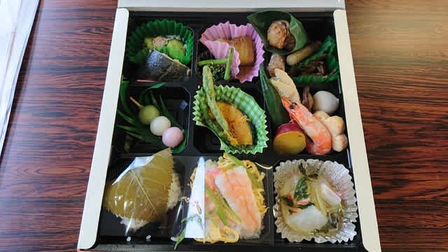 約5kmのコースの終点は岩出地区公民館にて、カロリー計算のされた昼食のお弁当。