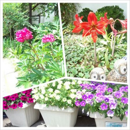 そして入り口右手には坂頭院長の義理のお父さまから、前回の桜草に続きサフィニアをいただいたのがきれいに咲いています。