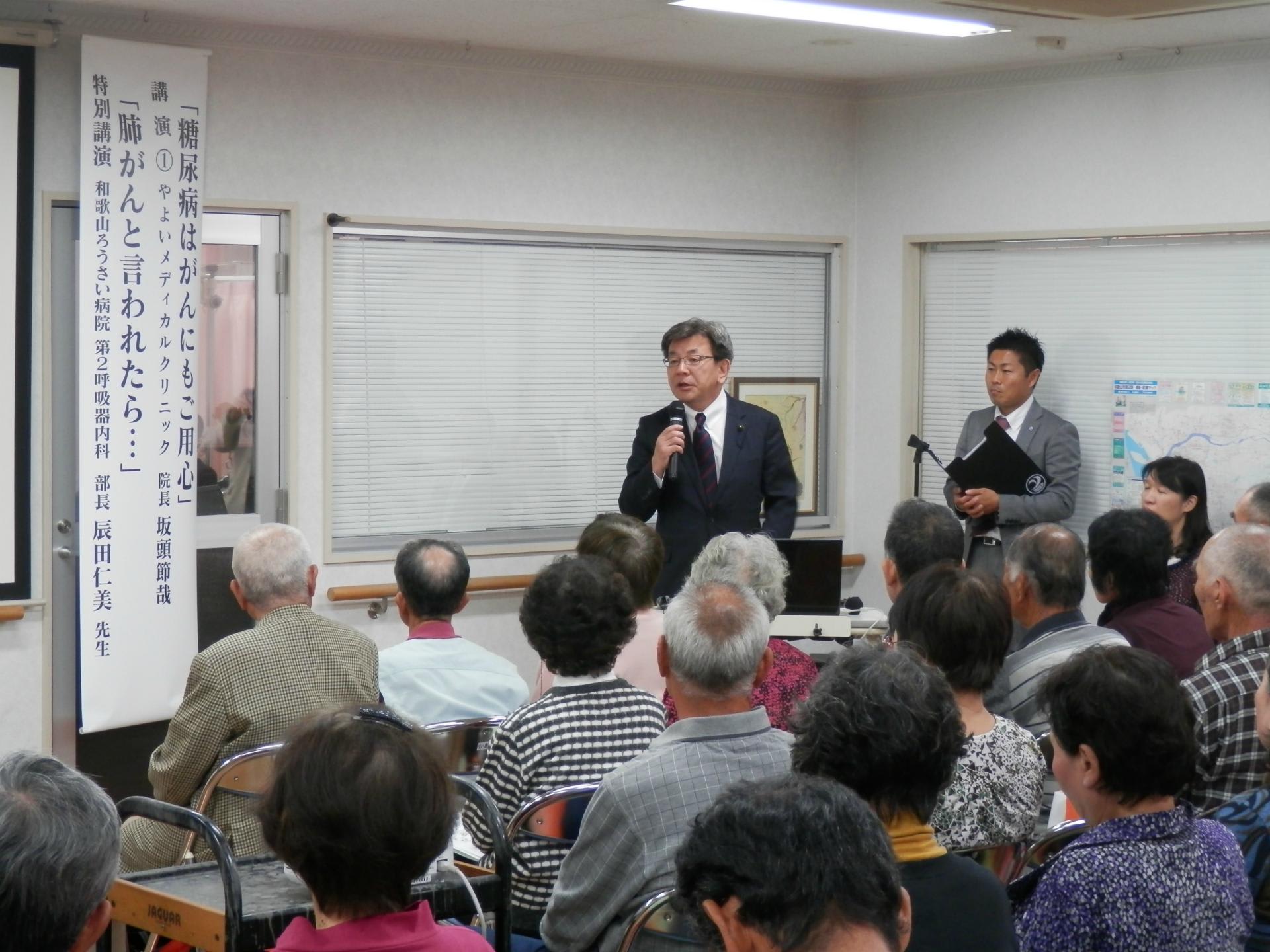 講演1は坂頭節哉院長による「糖尿病はがんにもご用心」と題して、糖尿病と癌のリスクについて分かりやすく講演をしていただきました。