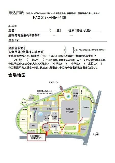 尚、参加にあたっては事前の申し込みが必要になりますので下記、和歌山県糖尿病協会のHP若しくはFAX申込書よりご登録をお願い致します。
