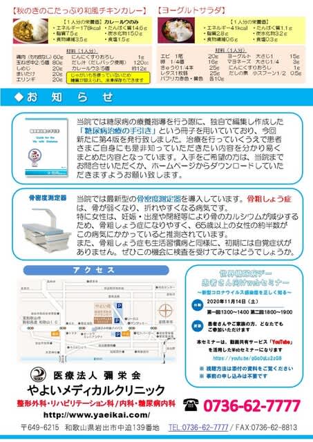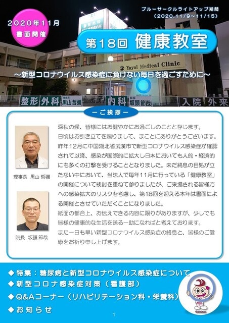 さて、先月のブログでもお伝えさせていただいたとおり医療法人彌栄会の医療部門である「やよいメディカルクリニック」で毎年11月上旬に開催させていただく健康教室について、第18回を迎える本年は書面による開催とさせていただくことになりました。