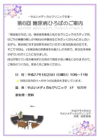 平成27年1月25日(日)10時より、やよいメディカルクリニック1F待合スペースにて第6回糖尿病ひろばを開催しました。