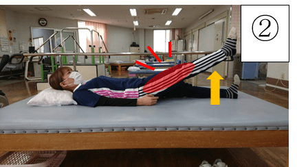 【下肢の伸展挙上運動】※寝て行える運動です。