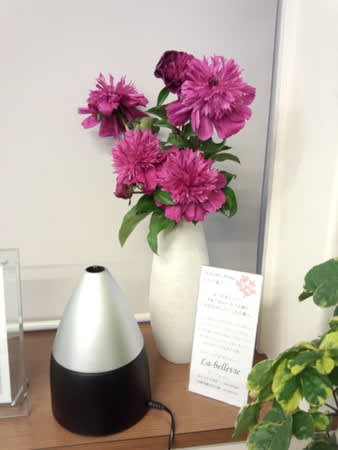 いつも待合室のアロマポットの横に飾らせていただいていますが、季節ごとのお花が患者さまから好評で、同時に自然のお花の薫りがして癒やされます。
