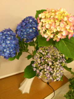 もう1つがこちらのお花で、このお花は今までも何度かブログでもアップさせていただいている方の、ご自宅のお庭に咲いている紫陽花4種類を持ってきてくださいました。