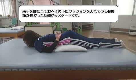 一つ目は寝て行える運動です。しかしうつ伏せになれない方は無理せず後ほど紹介する方法を行って下さい。