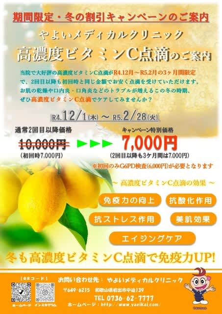 クリニック便り~高濃度ビタミンC点滴 冬の期間限定・割引キャンペーンのお知らせ~