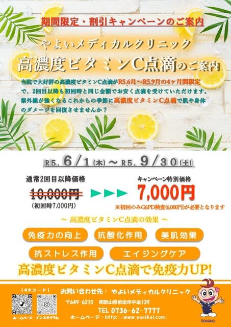 当院で大好評の高濃度ビタミンC点滴が今年も6月から9月までの4ヶ月間限定で、