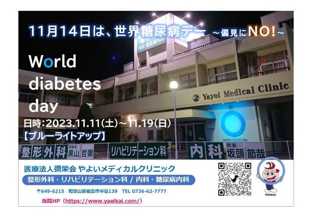 11月14日の世界糖尿病デー、そして全国糖尿病週間(11/12~11/18)に合わせて今年も当院ではブルーサークルのライトアップを行います。