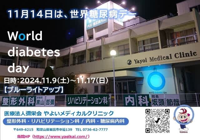 11月14日世界糖尿病デー、そして全国糖尿病週間(11/11~11/17)に合わせて今年も当院ではブルーサークルのライトアップを行います。