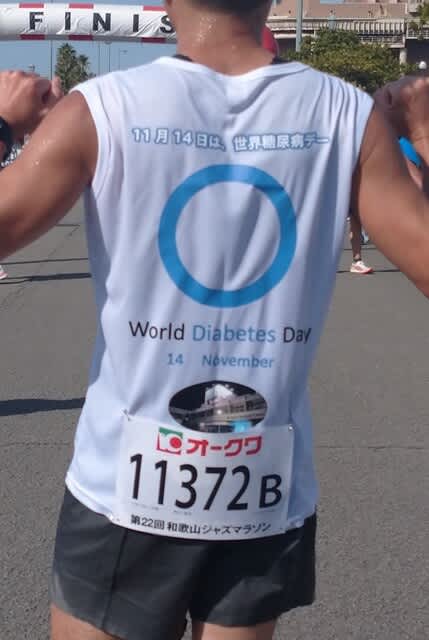 11月10日(日)に和歌山市で開催された第22回和歌山ジャズマラソンにブルーサークルのマークが背中にプリントされたユニフォームを着用して出場し、多くのランナーの目に触れてもらうべく疾走してきました。