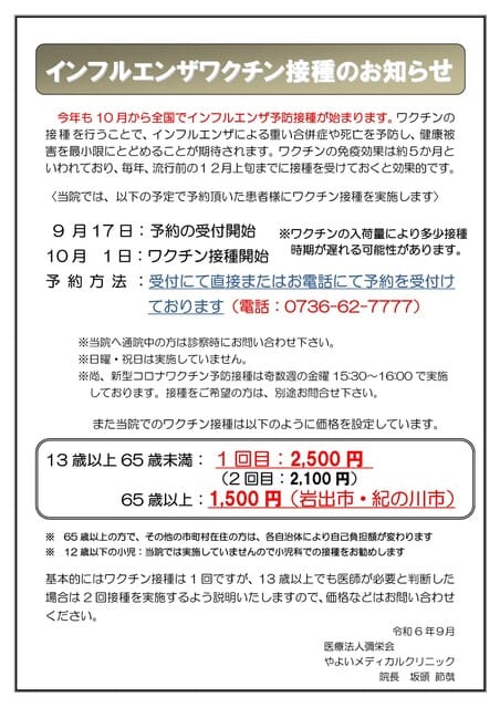 クリニック便り~2024年インフルエンザワクチン予防接種のお知らせ~