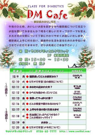 午後のひと時、お茶でも飲みながら糖尿病について役立つお話を聞いてみませんか?