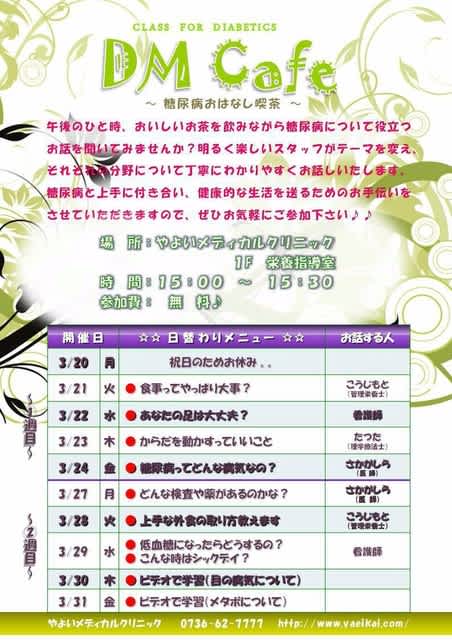 以下、3月のDMcafe(糖尿病教室)3/20(月)~3/31(金)のスケジュールをお知らせします。