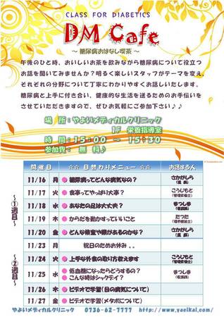 以下、11月のDMcafe(糖尿病教室)11/16(月)~11/27(金)のスケジュールをお知らせします。