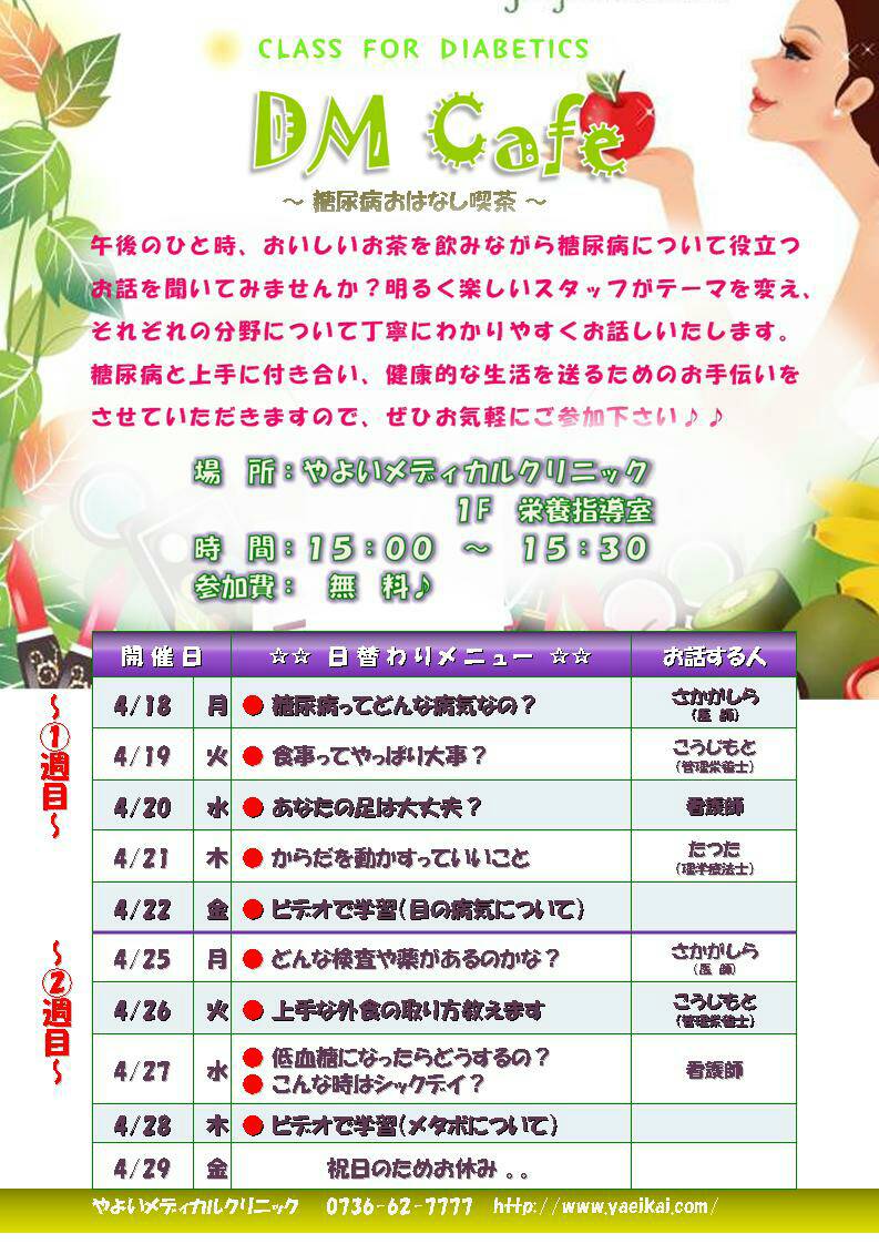 午後のひと時、お茶でも飲みながら糖尿病について役立つお話を聞いてみませんか?