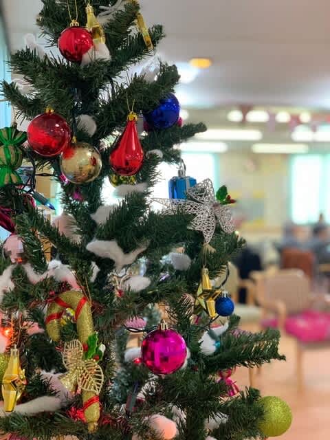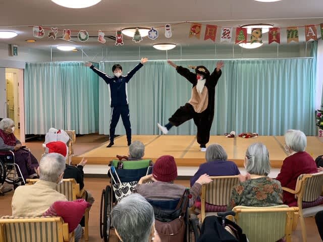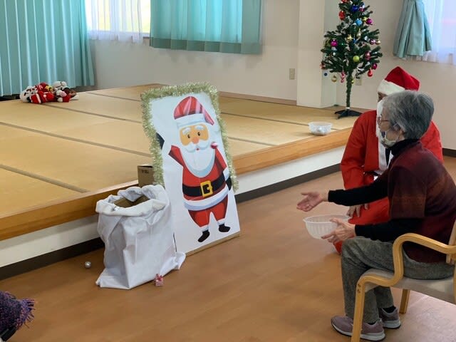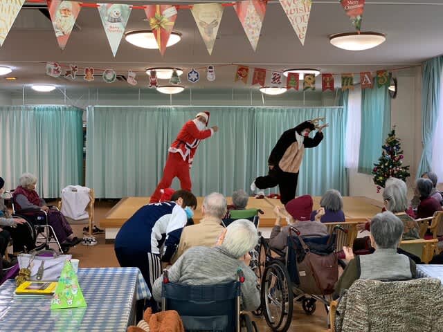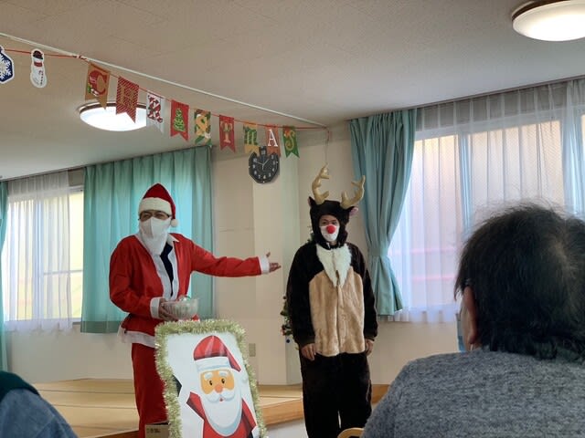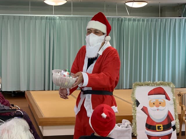 今年はコロナウイルス感染防止のため、全体でのクリスマス会を行うことはできませんでしたが、年に一度の行事ということもあり、デイケア利用者様と入所者様には各フロアーにてイベントを行う運びとなり、いつもとは違った雰囲気の中で会を進行することとなりました。