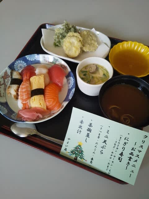 お寿司に天ぷらに茶碗蒸しに赤だしと豪華な品々に舌鼓を打ち、『普段、お寿司なんかめったに食べやんから胃がビックリしてるわ』『夜ご飯いらんぐらい満足したわ』など大変喜んでいただきました。