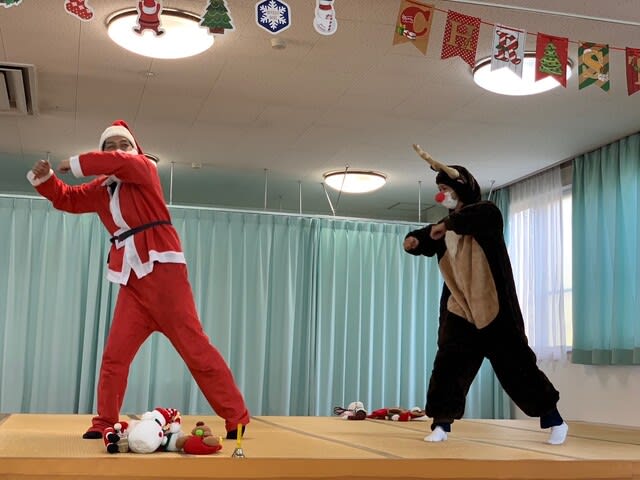 ゲーム終了後、サンタクロースとトナカイによる、クリスマスソングに併せた踊りを披露しました。一生懸命に踊る姿に、皆さんから応援と拍手をいただきました。