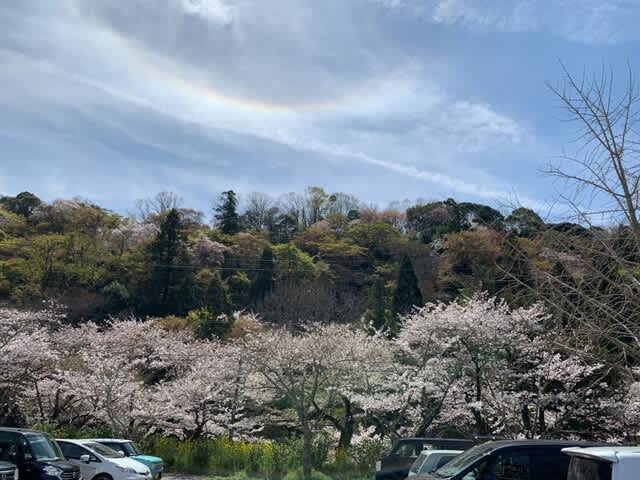 空を見上げると薄っすらと虹も出ており満開の桜と合わさり幻想的な空間となりました。