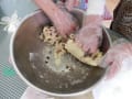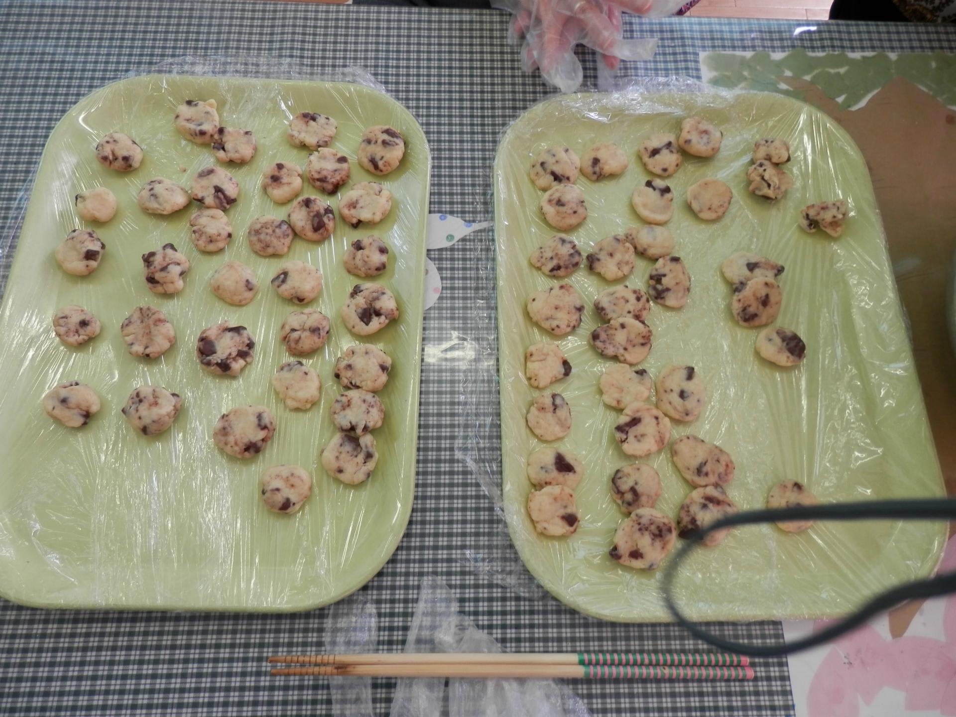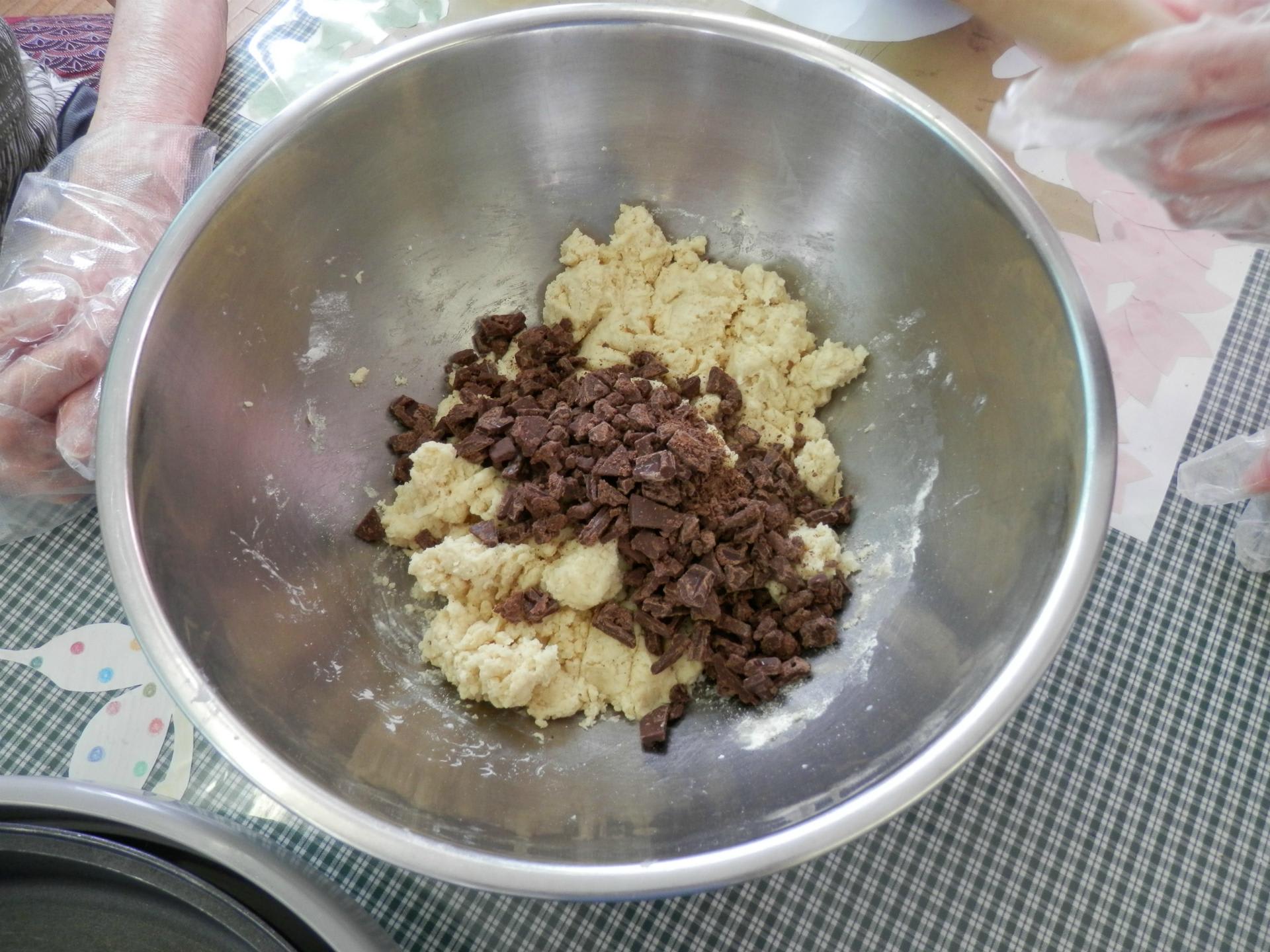 作った生地に砕いたチョコを混ぜ入れ、ご利用者様に、好きな形を作って頂きました。
