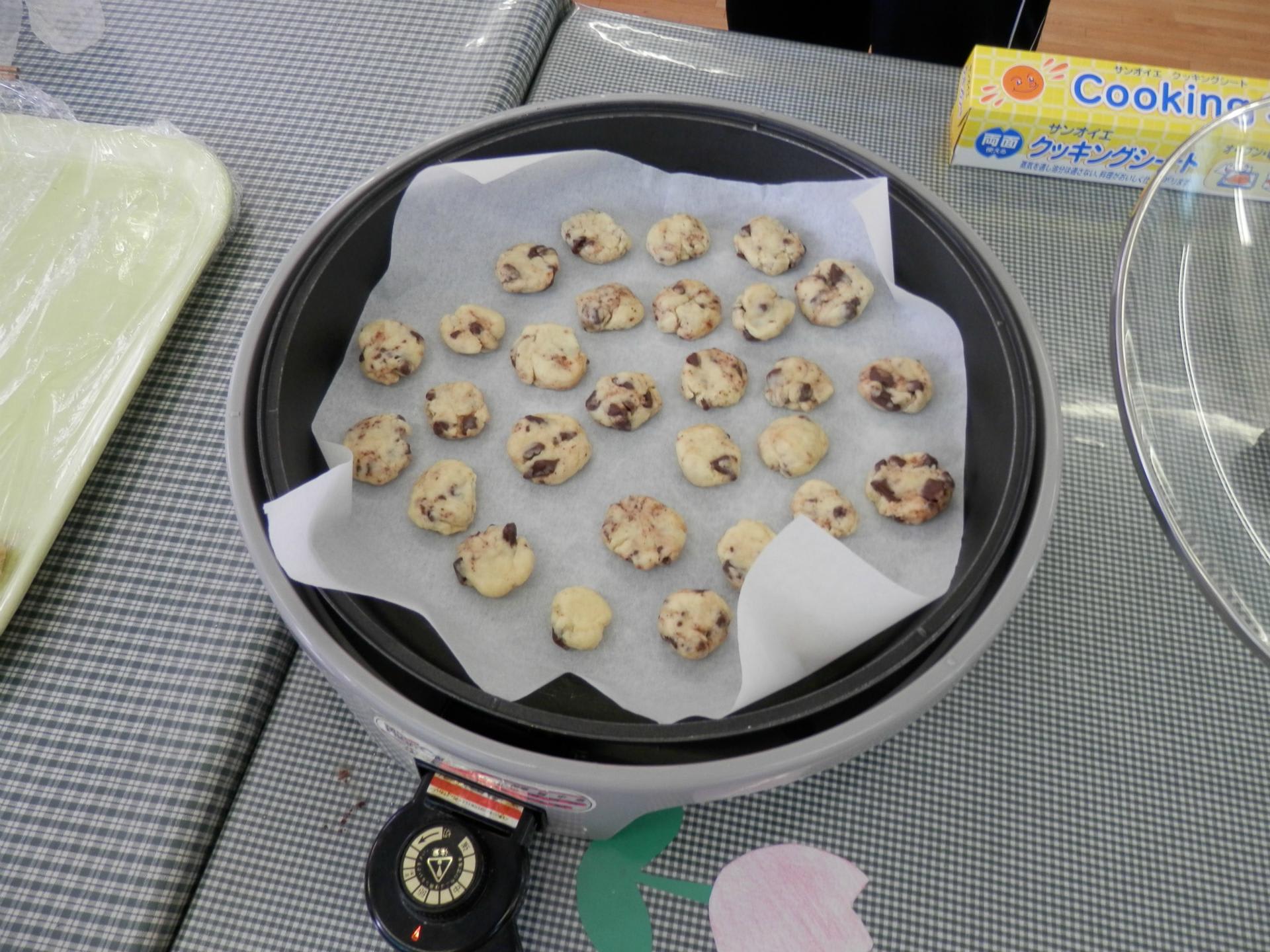 バターを溶かす担当だったり、チョコを砕いたり、生地をこねたり、「疲れたから交代―!」等言って、利用者様同士で交代されたりと、参加された皆様に楽しんで作って頂けたと思います。