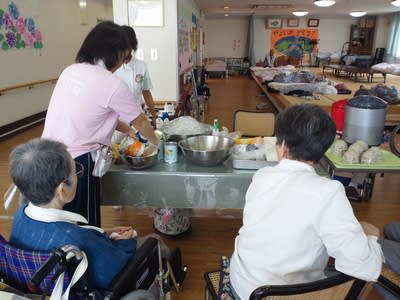 デイケアでは、月に一度レクリエーションの一環としてクッキングを行っています。
