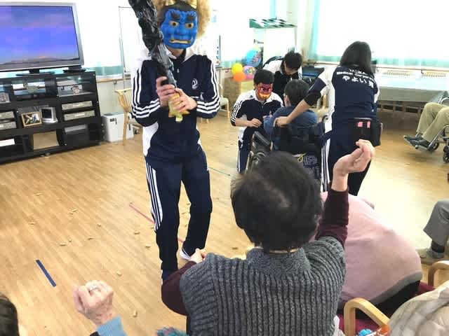 鬼の登場に、利用者様からは驚きの声が!鬼も利用者様に悪さをしようと大暴れ!