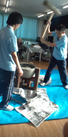 前日に臼と杵を用意しておき、いよいよ当日!!