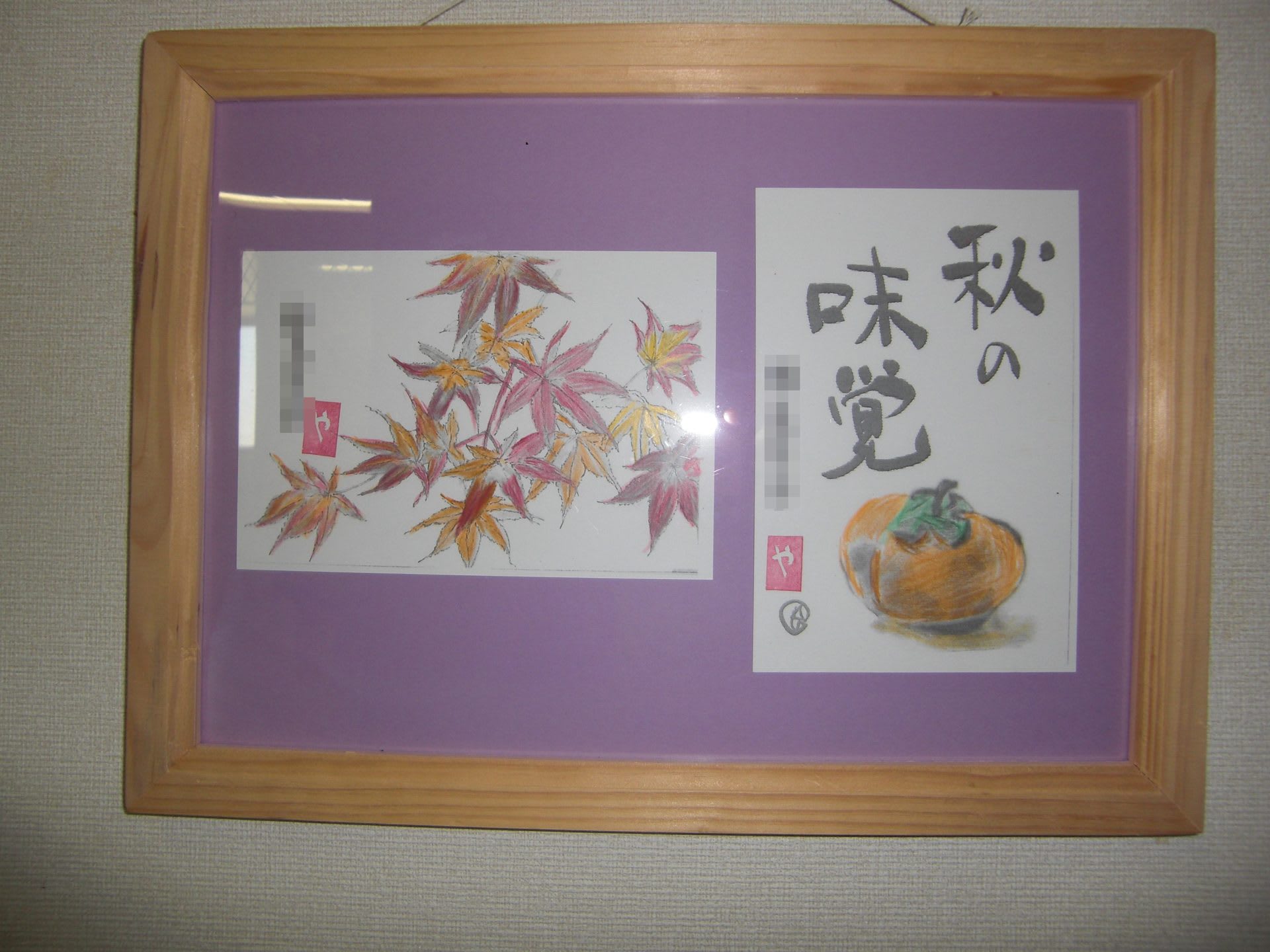 秋ならではの旬の物を絵手紙にし、色鉛筆で色を塗り、入所者様それぞれに個性豊かな作品が出来上がりました。