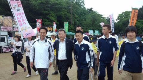 リレ-ウォークでは、開会セレモニーで自身の9年前に経験された肺癌のお話をして下さいました、尾花和歌山市長も歩かれていました。